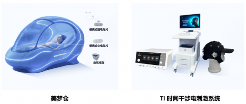 “美梦仓”——国内首个将脑机接口技术 + 睡眠监测 + 多模态干预深度融合的智能睡眠调控平台,可便携采集脑电、心电、呼吸、血氧、声音等多维数据,生成个体化睡眠报告,精准监测睡眠分期及呼吸、心脏、语言和运动异常。其中美梦仓依托自主研发算法构建“监测-增强-调控”三位一体睡眠优化体系,具备97.66%精准医学级睡眠监测、慢波-纺锤波耦合技术增强深睡、多感官协同诱导调控清醒梦的核心功能;