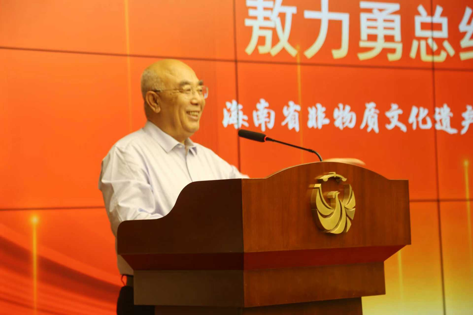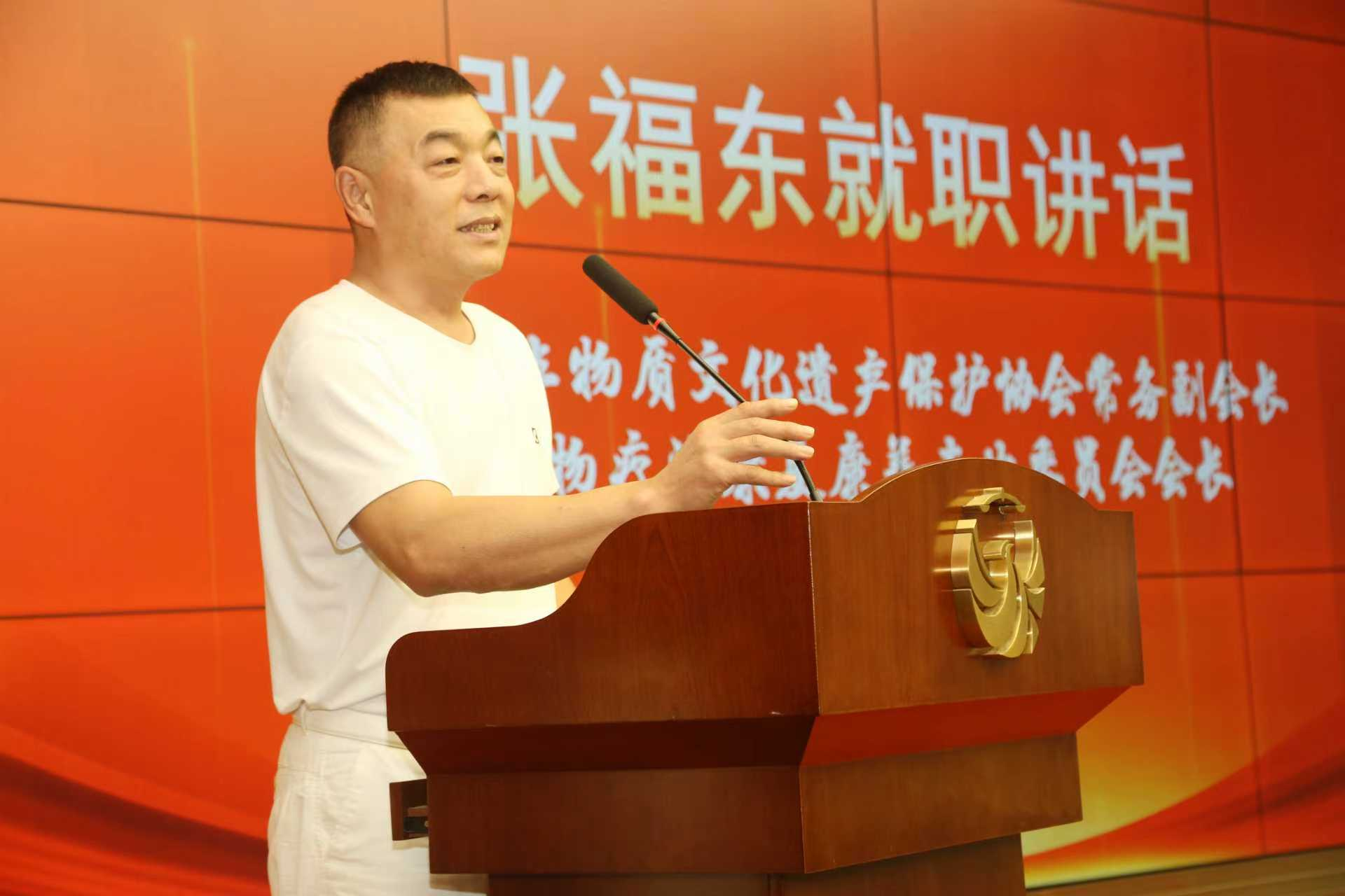 海南省非遗协会常务副会长、非药物疗法康复康养专业委员会会长张福东发表就职表态讲话。