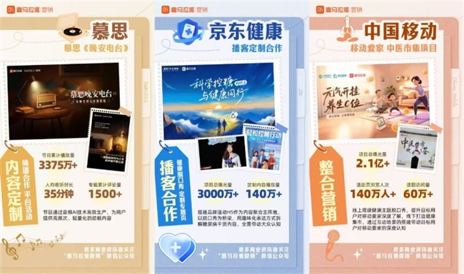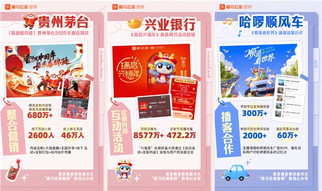 近日,喜马拉雅2025十大内容营销案例公布。从携手慕思打造“晚安电台”,到与贵州茅台共同推出“酱香暖归途”春运项目;从与太平洋产险共创视频播客《行走的思考》,到联合香港旅游局打造播客旅行团“影游香港”……十大案例精准捕捉大众情绪热点,以多元创新形式讲述品牌故事,让品牌“声”入人心的同时,实现品牌价值的深度传递。
