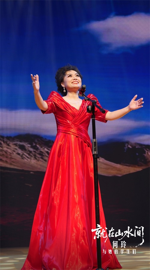 随后近 20 首中外曲目轮番上演,青年学子各展风采:郭佳茹以《折桂令・春情》融合元曲雅韵与现代旋律,虞柠萌借《定风波・莫听穿林打叶声》传递苏轼 “一蓑烟雨任平生” 的豁达,杨舒壹的越剧《金玉良缘》尽显戏曲与声乐的碰撞之美,芮子涵、毛文哲演绎的多尼采蒂歌剧选段则张力十足。而何玲的登台更是将氛围推向高潮:《天路》唱尽山海壮阔,《念奴娇・赤壁怀古》重现千古豪迈,切题曲目《就在山水间》道尽沂蒙军民情谊,每一句唱腔里,都是她对音乐的赤诚与对学生的期许。