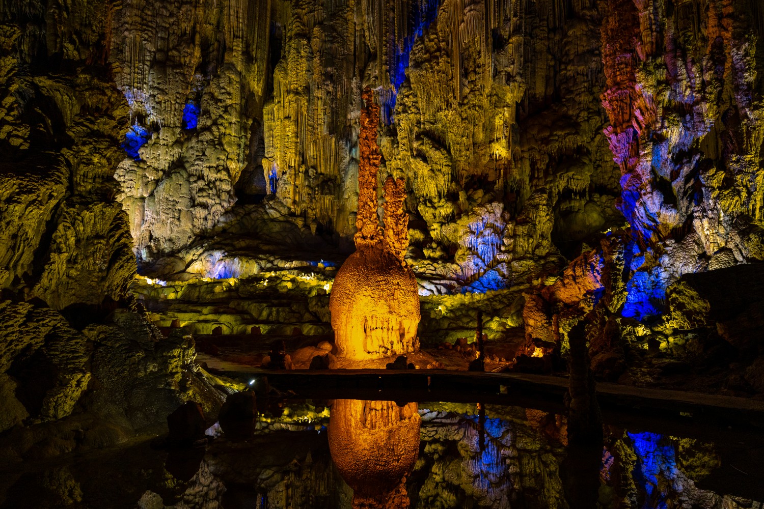 作为织金县最具代表性的旅游名片,织金洞世界地质公园今年焕发出别样的新春气息。游客可深入地心,走进这座浩瀚的的地下艺术宫殿,沉浸式感受大自然的鬼斧神工——恢弘的溶洞穹顶、千姿百态的钟乳石,无不令人屏息凝神、惊叹连连。