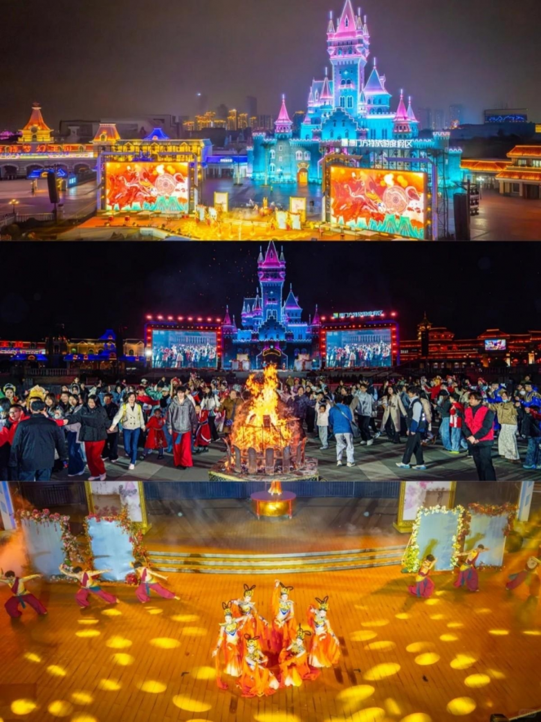 如果说有哪些项目天然适合“春季夜游乐园”这个概念,西安大唐不夜城一定算一类代表。它虽然不是传统机械设备型乐园,但在夜游场景打造、沉浸式街区体验、演艺互动和文化氛围营造上,已经具备极强的“乐园化”特征。夜色中的盛唐街区、巡游演出和文化互动,让这里成为兼具游客体验感与传播爆发力的夜游样本。